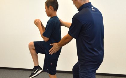 このリハビリ・トレーニングはスポーツ復帰するためには絶対に欠かせないものです。痛みが取れたからといってリハビリせずに復帰してしますと再びケガをしてしまう可能性が高くお勧めできません。ケガの治療とともに、痛めた原因を追求し、原因となった身体機能やスポーツ動作をリハビリ・トレーニングで改善・強化することで、ケガをしない体、思い通りに動ける体で復帰できるようサポートします。