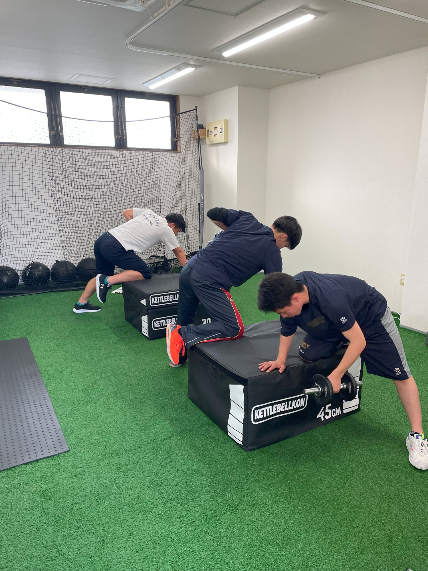 | 内容 | 柔軟性アップ、体幹筋力アップを中心に小学生年代でもっとも発達する運動神経を高めるトレーニングを行い、動ける体を作るプログラム | ケガ予防と強い体作りを中心に行い、筋肉量を上げ、スイングスピードや球速を上げるなどの目標達成を目指すプログラム | 中学3年生が高校野球の準備のためのプログラム。ウエイトトレーニングの基礎~瞬発力アップ、パワー向上を行い高校野球で活躍するための体を作ります | |